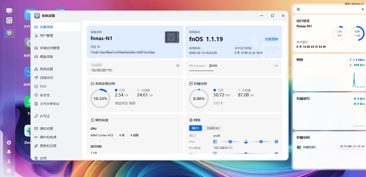 斐讯N1安装飞牛OS 2026-02-12 分享,经验 254 阅读 评论 飞牛公测仅做通知哈!.下载地址:ARM版本之前不可以安装到emmc,只能U盘使用,公测版本已经解决了N1盒子调试成可以USB启动,刻录镜像到U盘。按照教程刷机,教程整体能用,8G版本的不推荐,毕竟N1的USB口是2.0的,我的是128G,优点是基本上具备了NAS以及Docker的全功能,缺点是运存太小了,只有2G,如果存储是128G的,当做一个家庭轻NAS够用了。 本文结束了 上一篇: 松声|廿六年·一月暮·岁灯残 下一篇: 没有了 标签: 斐讯N1安装飞牛OS本文最后更新于: 2026-02-12 05:30:41